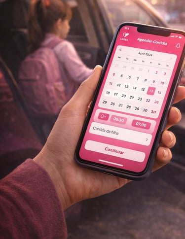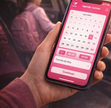 Todas as corridas são solicitadas direto no aplicativo, de forma rápida e prática. Você tem a opção de agendar as corridas com antecedencia, e assim, garantir que uma de nossas motoristas esteja disponível para te atender, no horário que precisar.